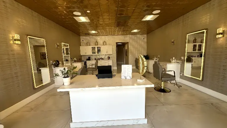 The salon is strategically positioned in a bustling business shopping center with minimal local competition, providing excellent visibility and customer accessibility. The space features an aesthetically beautiful design that creates an inviting atmosphere for clients seeking premium beauty and wellness services.